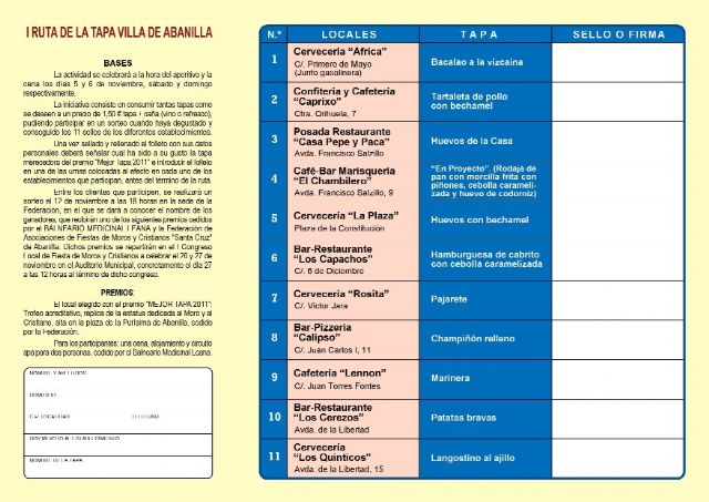 5 y 6 de noviembre. I Ruta de la Tapa Villa de Abanilla.