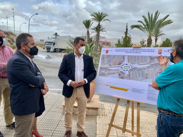 El consejero de Fomento e Infraestructuras, José Ramón Díez de Revenga, acompañado por el alcalde de Abanilla, José Antonio Blasco, presentó hoy el proyecto de construcción de la nueva glorieta completa que mejorará la movilidad y acceso al importante parque empresarial de la localidad donde trabajan más de 250 personas en empresas de sectores tan diversos como el calzado, hortofrutícola, transporte, mueble, químico o reciclaje, entre otros.