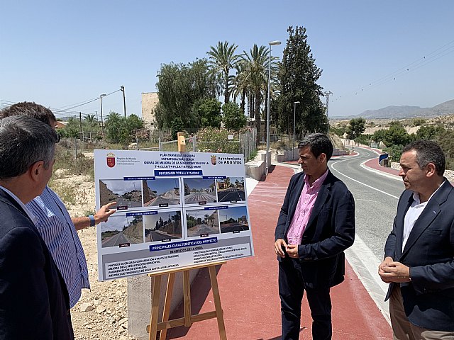 El consejero en funciones de Fomento e Infraestructuras, José Ramón Díez de Revenga, junto con el alcalde de Abanilla, José Antonio Blasco, supervisó hoy las obras que ejecuta el Consistorio con la inversión regional y destacó que "además de la rehabilitación del pavimento, se mejora la iluminación y se protege la vía con nuevos taludes que eviten los desprendimientos en episodios de lluvias intensas".